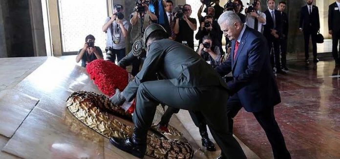 Misak-ı Milli Kulesi’nde Anıtkabir Özel Defteri’ni imzalayan Başbakan Yıldırım, deftere şunları yazdı: