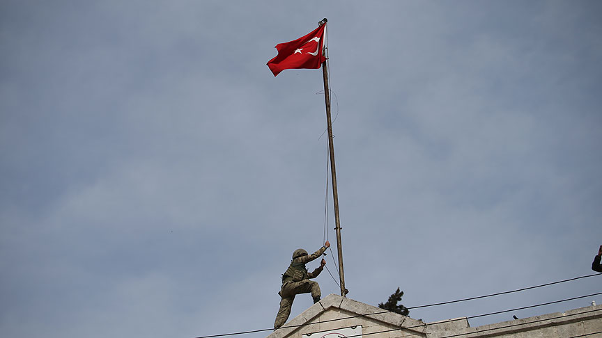 TSK ve ÖSO güçlerince kontrolün sağlandığı Afrin şehir merkezine Türk bayrağı asıldı. Zeytin Dalı Harekatı kapsamında sabah 08.30’da kontrolün tamamen sağlandığı Afrin’de güvenlik güçleri bir yandan arama tarama faaliyetlerini sürdürürken diğer yandan da stratejik öneme sahip binalara girildi. Şehir merkezine girişte tekbir getiren güvenlik güçleri daha sonra buradaki Hükümet binasına çıkarak Türk bayrağını dalgalandırdı.