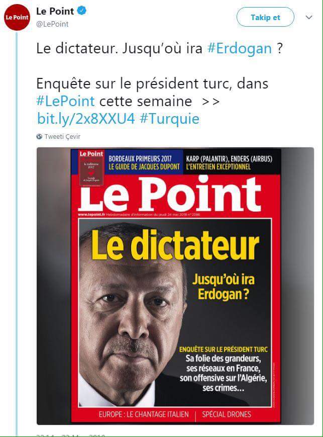 Fransız Le Point dergisinin bu haftaki sayısında Türkiye, Cumhurbaşkanı Recep Tayyip Erdoğan ve Fransa’daki Türk kökenli kişi ve kuruluşlara yönelik ifadeler tepkiyle karşılandı.