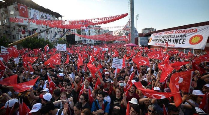 CHP nin cumhurbaşkanı adayı MUHARREM İNCE “Televizyonları uyarıyorum, bakın 104 mitingimde yanlış yaptınız, şimdi geriye kaldı 3 büyük kentin mitingi. Ben de meydanlara gönlünü koyan, yüreğini koyan, beni dinlemeye gelen vatandaşlarıma sesleniyorum. Eğer aynı numarayı İSTANBUL-ANKARA-İAZMİR de de yaparlarsa miting meydanından kanalların önüne gideceğiz hep birlikte.” dedi.