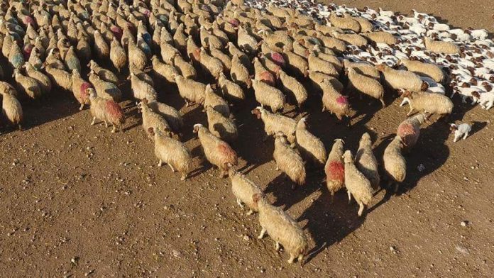Denizli Çal’da “Sudan Koyun Geçirme” etkinliği öncesi, mor renge boyanmış koyunlar ile çoban köpekleri eşliğinde kortej yürüyüşü düzenlendi.