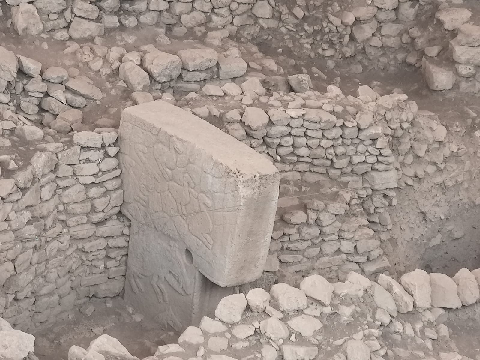 Yarım kalmış taş işleri kırılmış çakmak taşları Göbeklitepe deki anıtsal yapının oluşturulurken çalışma alan ve sekilleri hakkında da veri oluşturmaktadır..