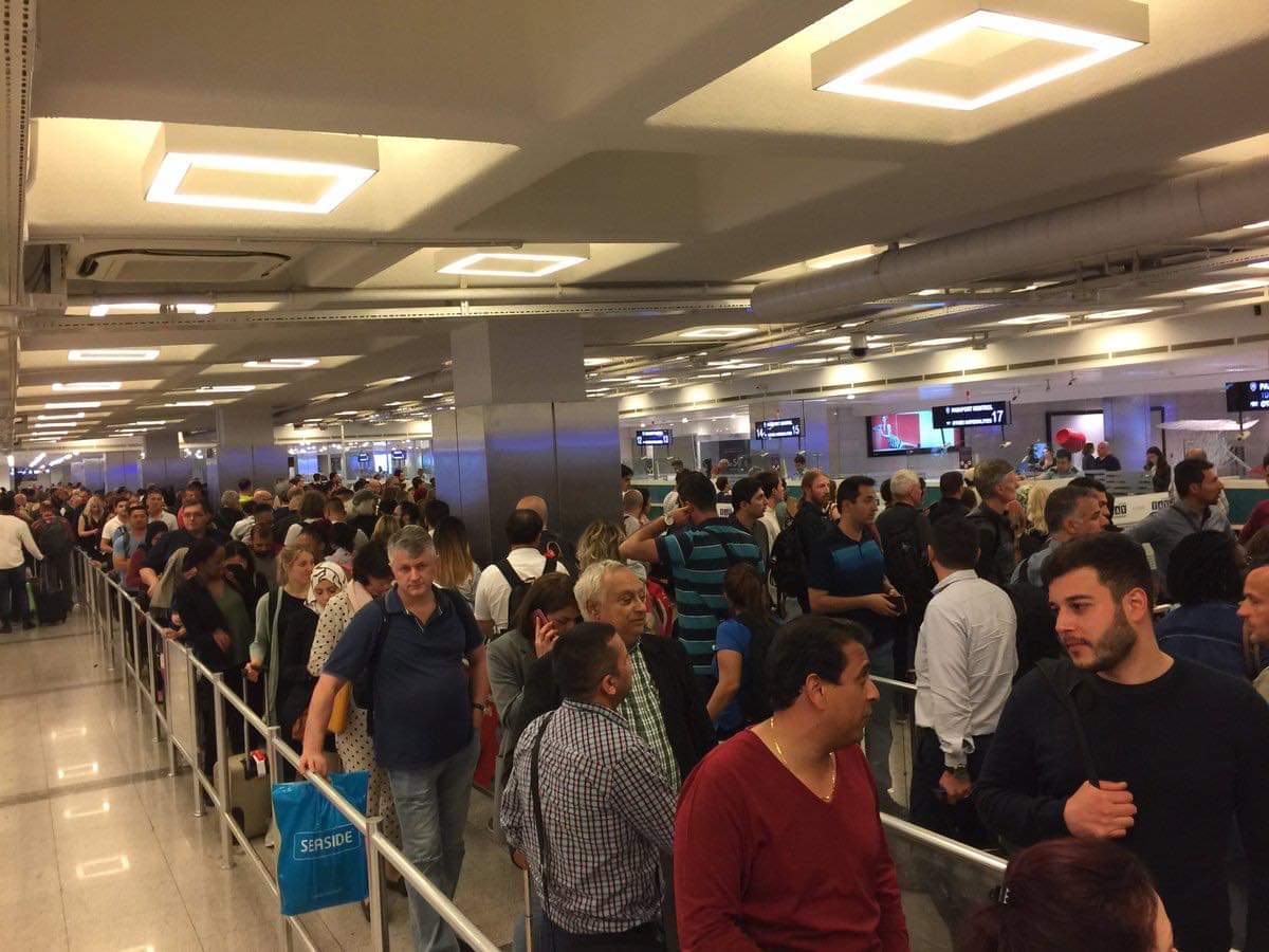 Tüm kontuarların dolu olduğu bölümde ful kadro çalışan havalimanı personeli herhangi bir aksalığıa yol açmadan düzenli ve yürür şekilde kuyruk akışını sağladı..