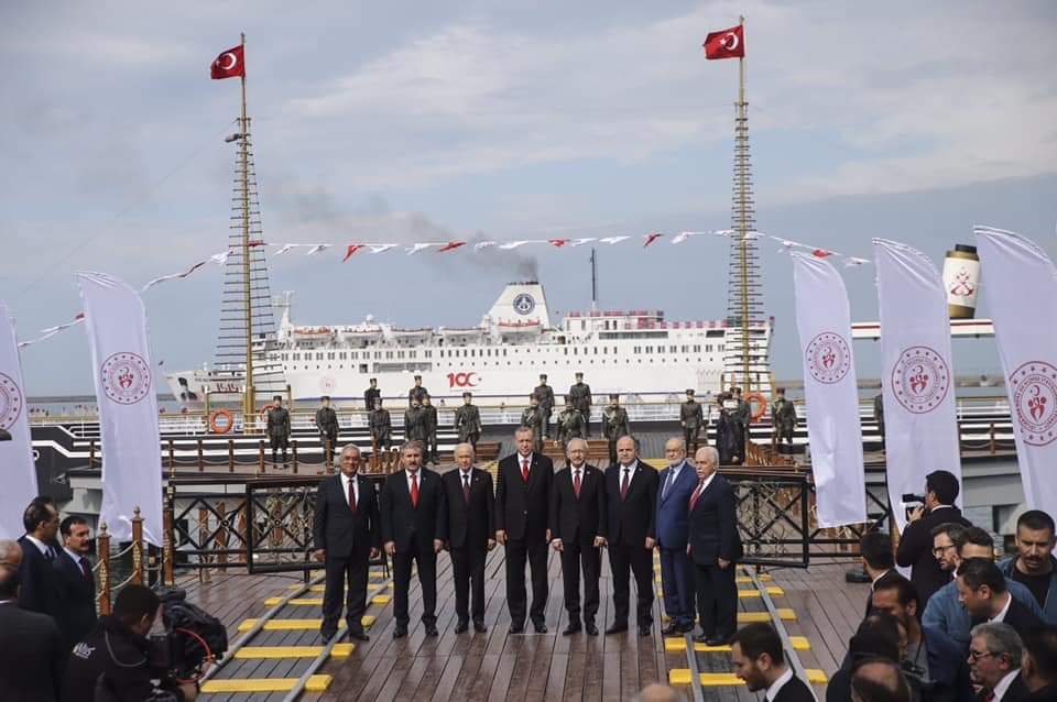 81 ilden ve dünyanın farklı ülkelerinden yaklaşık 200 gençlik temsilcisini taşıyan, Atatürk’ün Bandırma Vapuru ile İstanbul’dan Samsun’a yaptığı yolculuğu canlandıran Piri Reis Gemisi’nde Atatürk portresi, 1919 tarihi, Milli Mücadele’nin 100. yılı logosu ve “Bitmeyen Yolculuk” yazısı yer aldı.