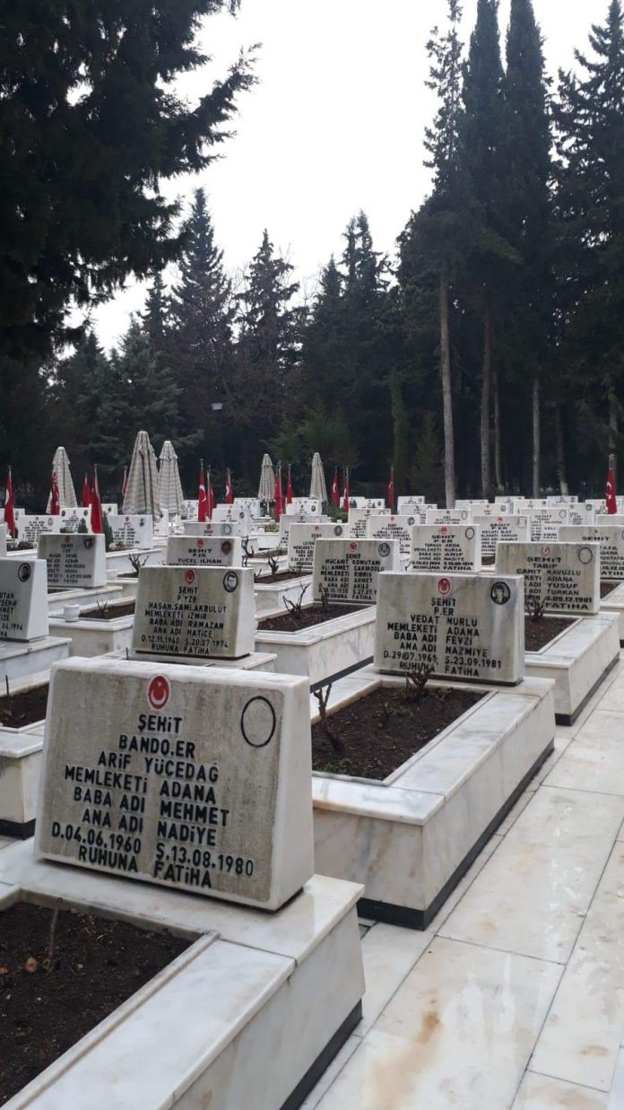 Adana’da, FETÖ’nün 15 Temmuz 2016’daki darbe girişimi sırasında şehit olan polis memuru ikizler Ahmet ve Mehmet Oruç’un kabirlerinin de arasında bulunduğu 79 mezarın taşlarına zarar verildi.