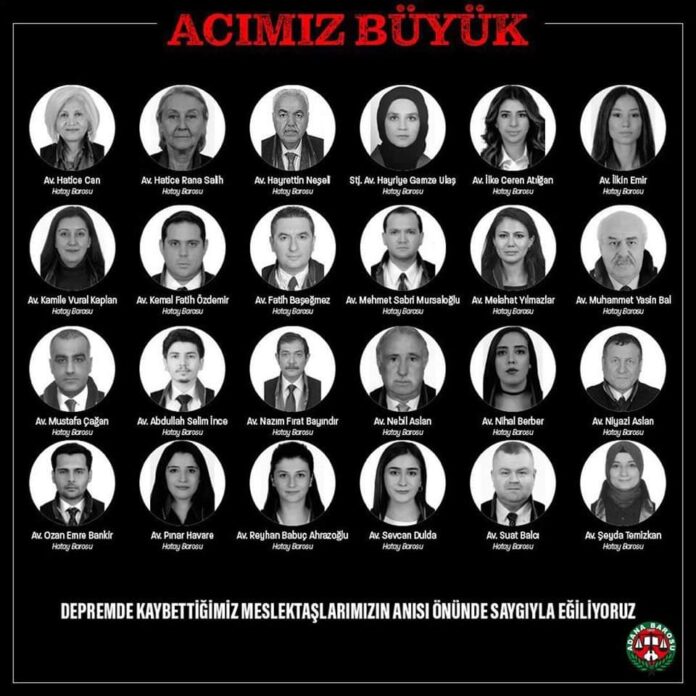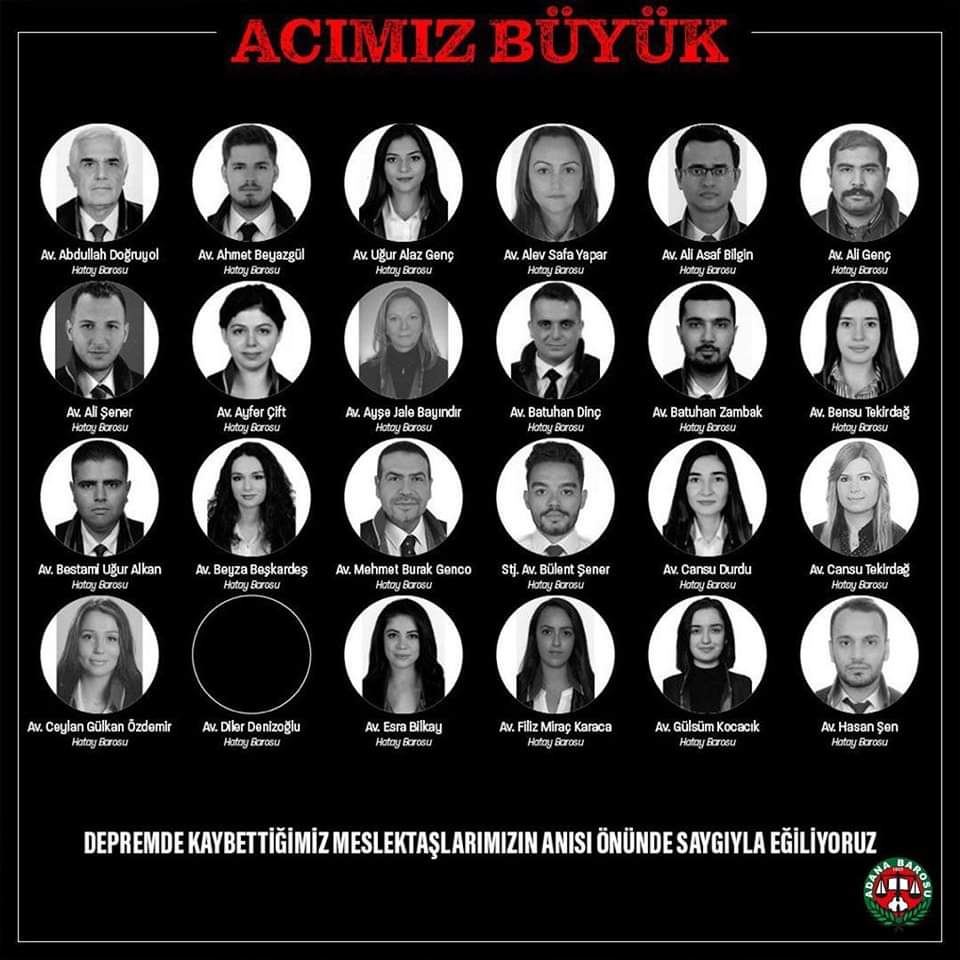 Korkunç depremde Hatay barosuna kayıtlı avukat arkadaşlarımıza rahmet ailelerine sabirlik diliyoruz