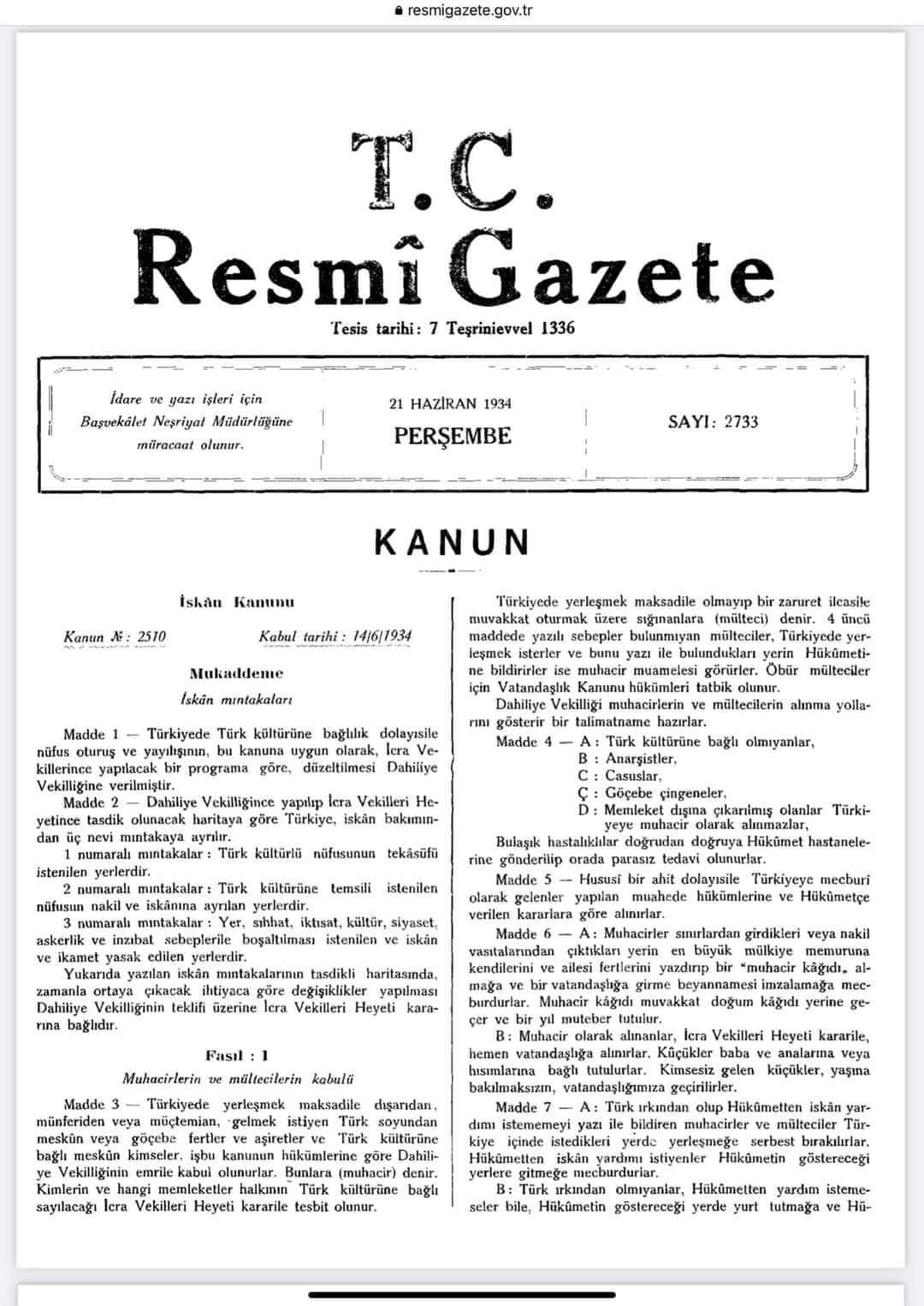 Resmî Gazete- 21 Haziran 1934